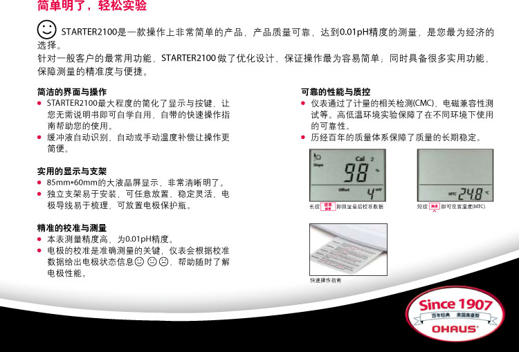 奧豪斯實驗室pH計STARTER 2100/3C pro-F酸度計產品介紹