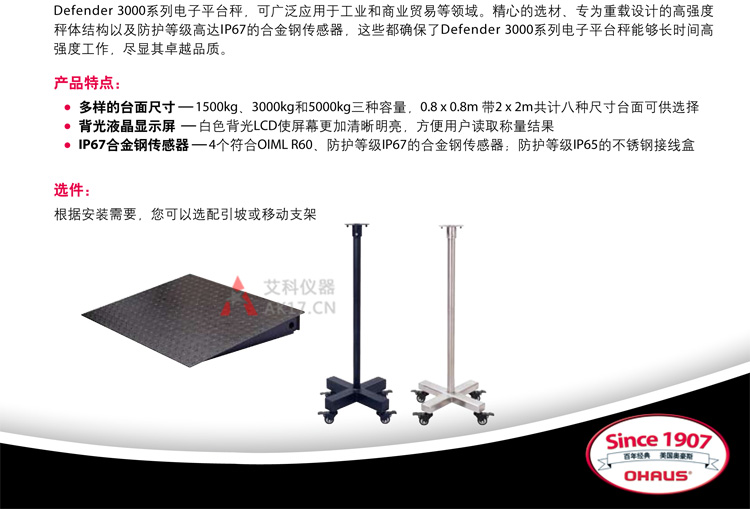 奧豪斯平臺稱DF51P1500HSRZH 電子平臺秤 電子地磅1000x1000mm產品介紹