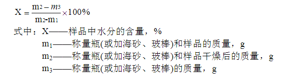 1 粉體樣品:取潔凈鋁制或玻璃制的扁形稱量瓶,置于101~105℃(一般設置為103℃)干燥箱中,瓶蓋斜支于瓶邊,加熱0.5~1.0h,取出蓋好,置干燥器內冷卻0.5h后稱量,記數。(必要時重復干燥**恒重)。精確稱取2g樣品(精確**0.0001克),放入此稱量瓶中,樣品厚度約為5mm,加蓋,精密稱量后,記數。置101~105℃干燥箱中,瓶蓋斜支于瓶邊,干燥4h后,蓋好取出,放入干燥器內冷卻0.5h后稱量。然后再放入101~105℃干燥箱中干燥1h,取出,放干燥器內冷卻0.5h后再稱量。**前后兩次質量差不超過0.002g,即為恒重。 2 膏體樣品:取潔凈鋁制或玻璃制的扁形稱量瓶,內加10.0±2.0克海砂及一根小玻棒,置于101~105℃(一般設置為103℃)干燥箱中,干燥0.5~1.0h后取出,放入干燥器內冷卻0.5h后稱量記數。(必要時重復干燥**恒重)。然后精密稱取2g樣品(精確**0.0001克),放入此稱量瓶中,加蓋連同玻璃棒一起精密稱量后,記數。接著用小玻棒攪勻海砂和樣品,置101~105℃干燥箱中干燥6h后蓋好取出,放入干燥器內冷卻0.5h后稱量。(驗證:長時間不做的產品或新產品按以上粉體檢測方法對此6h檢測結果進行驗證)。 四、計算: