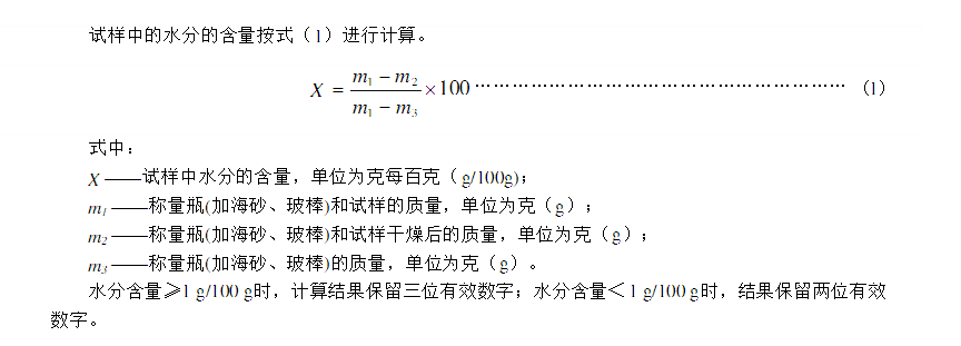 利用食品中水分的物理性質,在101.3 kPa(一個大氣壓),溫度101 ℃~105 ℃下采用揮發方法測定樣品中干燥減失的重量,包括吸濕水、部分結晶水和該條件下能揮發的物質,再通過干燥前后的稱量數值計算出水分的含量。 3