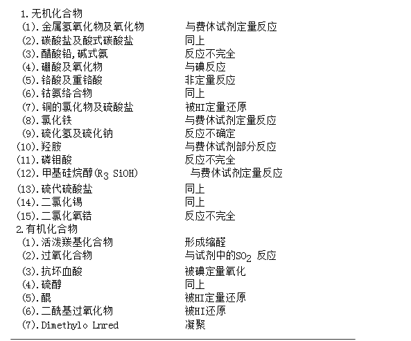 13.一些弱的含氧酸鹽,如碳酸鹽,硼酸鹽主要與HI反應生成水干擾測定。而無機酸和酸性氧化物不干擾測定。氨利用卡爾費休試劑直接滴定時會形成碘化氮,可以在滴定前加過量的醋酸以消除這種干擾。