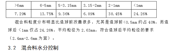 表3-1 2007年9月份實測二次混合后物料粒度為(五次平均值):