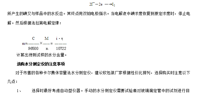 電量法,是基于將試樣溶于含有一定碘的特殊溶劑的電解液后,水即消耗碘,但所需的碘不再是用已標定過的含碘試劑去進行滴定,而是通過電解過程,使溶液中的碘離子在陽極氧化為碘: